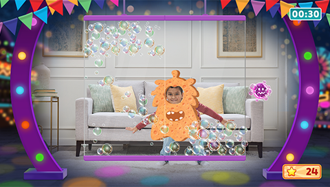 Die Kamera von LeapMOVE erfasst die Spielperson und misst deren Bewegungen mittels KI-Posenerkennung. Zu Spielbeginn erscheint ein Kreis auf dem Bildschirm, der den Spielenden die Startposition zeigt. Nun muss nur noch ein Arm gehoben werden und schon kann es losgehen. Alles wird ohne Controller und völlig frei gespielt.